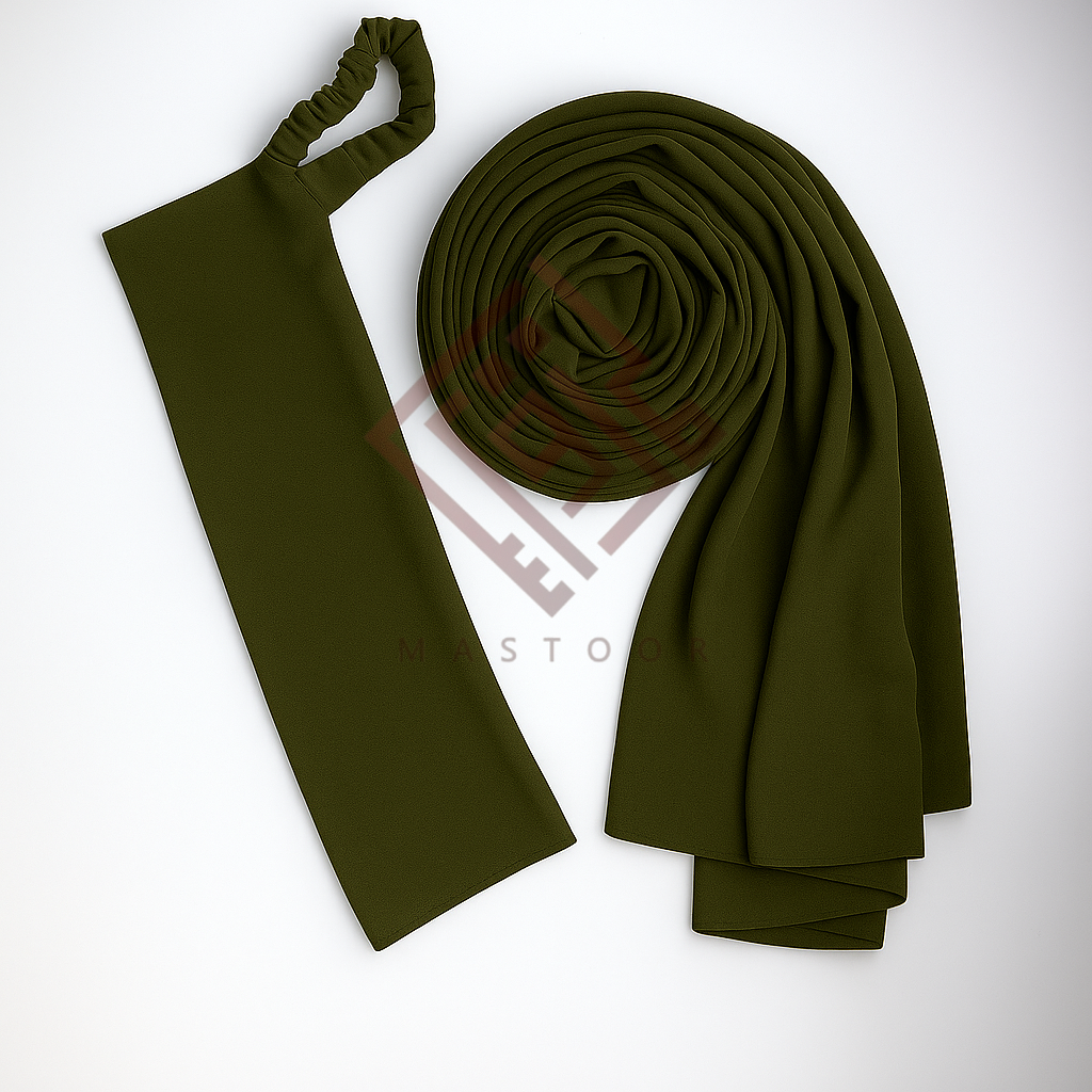 Our MASTOOR Premium Georgette Hijab & Half Elastic Niqab Set is the perfect blend of style, comfort, and modesty. Crafted from our signature high-quality georgette, the hijab offers a smooth, lightweight drape, while the matching half elastic niqab ensures ease of wear and breathability. Designed for everyday elegance or special occasions, this set guarantees a coordinated and polished appearance.