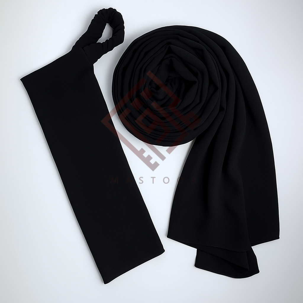 Our MASTOOR Premium Georgette Hijab & Half Elastic Niqab Set is the perfect blend of style, comfort, and modesty. Crafted from our signature high-quality georgette, the hijab offers a smooth, lightweight drape, while the matching half elastic niqab ensures ease of wear and breathability. Designed for everyday elegance or special occasions, this set guarantees a coordinated and polished appearance.